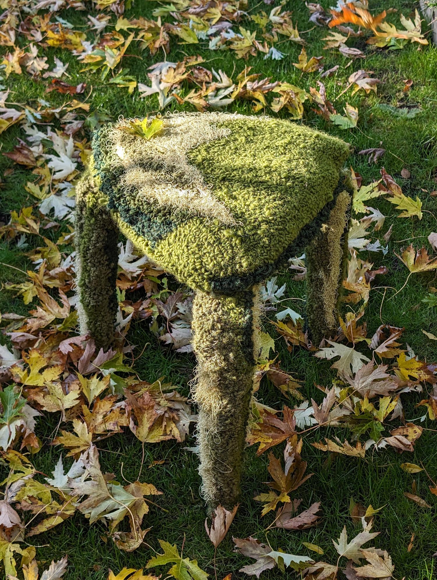 A handmade tufted stool, made using a punch-needle technique, each loop has been hand tufted then finished by hand sewing. Materials used: Hessian, Wool & Wood.